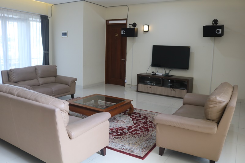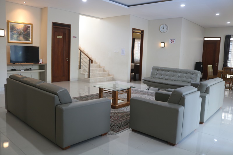 Untuk area bersantai, Villa Palm menawarkan ruang keluarga dan ruang tamu yang sangat luas. Dengan sofa-sofa nyaman, TV layar datar (seringkali smart TV), dan sistem hiburan modern seperti karaoke atau sound system, area ini menjadi tempat ideal untuk berkumpul, bercengkrama, atau sekadar menikmati waktu berkualitas bersama. Ruang makan yang dilengkapi dengan meja besar juga memastikan seluruh tamu dapat menikmati hidangan bersama dalam suasana yang hangat dan akrab.