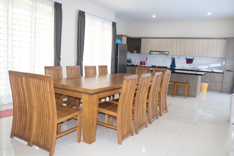 Salah satu aspek penting yang menjadikan Villa Palm ideal sebagai penginapan rombongan Lembang adalah fasilitas dapurnya yang modern dan area makan yang luas. Dapur yang lengkap memungkinkan para tamu untuk berkreasi dengan masakan sendiri, dari sarapan ringan hingga makan malam mewah. Ini sangat menghemat biaya dan memberikan pengalaman yang lebih personal dibandingkan terus-menerus makan di luar.