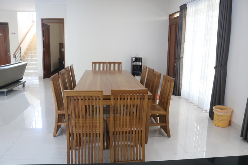 Meja makan besar yang dapat menampung seluruh rombongan menciptakan momen kebersamaan yang berharga. Bayangkan menikmati hidangan lezat sambil berbincang dan tertawa bersama orang-orang terkasih, sebuah pengalaman yang sulit didapatkan di hotel biasa. Selain itu, area BBQ yang tersedia di luar ruangan menambah pilihan kuliner dan hiburan, memungkinkan Anda mengadakan pesta panggangan yang seru di bawah udara sejuk Lembang. Fitur-fitur ini memperkuat posisi Villa Palm sebagai penginapan 9 kamar private pool Lembang yang mengedepankan kebersamaan dan kenyamanan.